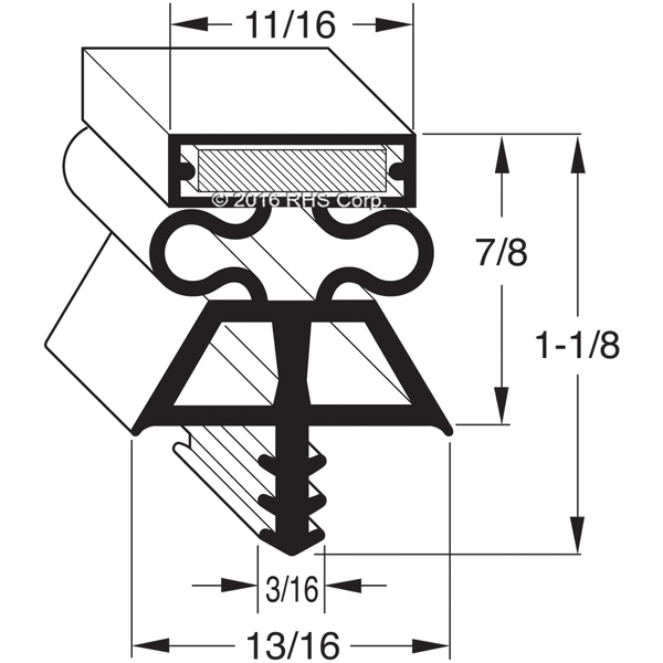 GRAY TRIPLE DART GASKET PROFILE, 3 SIDED, MAGNET ON ALL 3 SIDES
