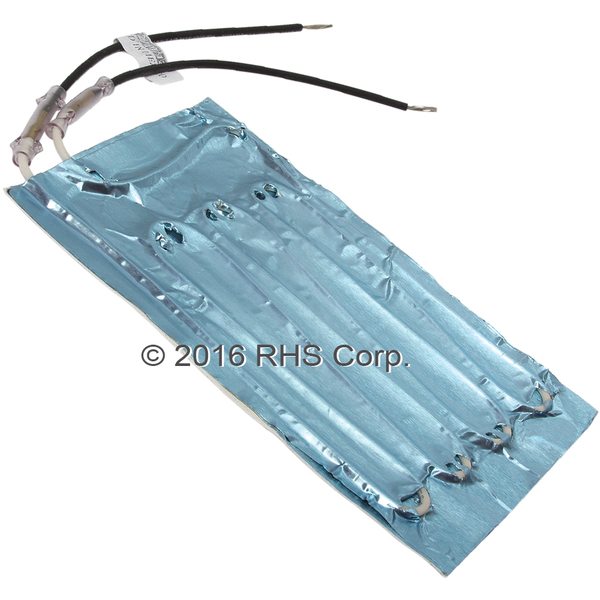 HEATER WIRE CIRCUIT SANDWICHED BETWEEN FOIL TAPE. MEASURES APPROXIMATELY 4" X 6" WITH 2 BLACK, 6" STRIPPED LEAD WIRES. 115 VOLTS.